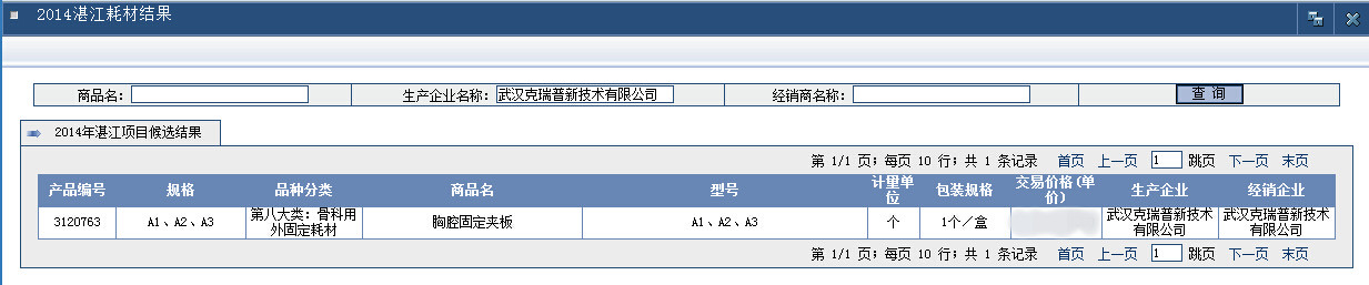 【2014年湛江醫(yī)用耗材集中采購候選結(jié)果展示】武漢克瑞普新技術(shù)有限公司生產(chǎn)的胸腔固定夾板(規(guī)格A1/A2/A3)胸骨骨科耗材在2014年度湛江集中采購項目中成功審核通過,我們的拿貨價格優(yōu)惠力度大對經(jīng)銷商拿貨要求門檻低,是眾多骨科耗材經(jīng)銷商可以視為拿貨標準的企業(yè)。